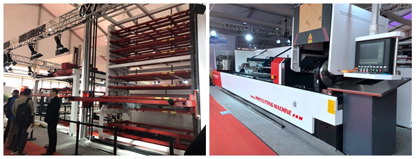 ? ? ? ?展會上,華俄激光攜重磅新品驚艷亮相,與眾多國際主流品牌同臺競技。其中W2館展出15000W高功率光纖激光切割機,W6館展出多層料庫平板自動上下料激光切割產線和全自動專業切管機,兩館齊放異彩。