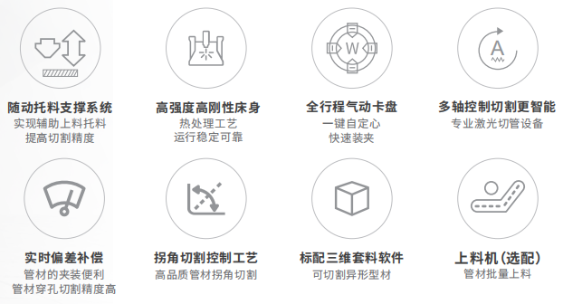 1. 專業管材控制系統支持方管、圓管、橢圓形等拉伸管、角鋼、槽鋼的高精度、高效率切割;