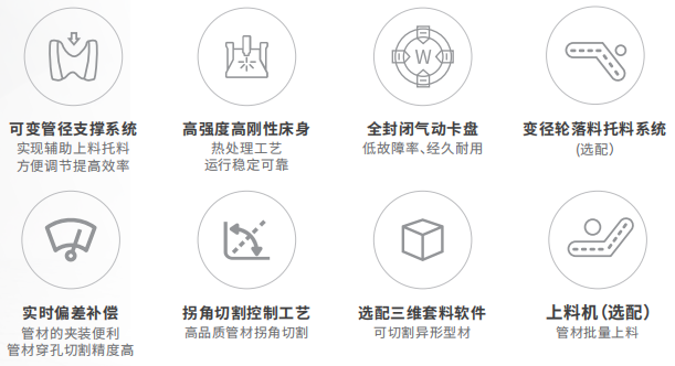 1. 專業管材控制系統支持方管、圓管、橢圓形等拉伸管、角鋼、槽鋼的高精度、高效率切割;